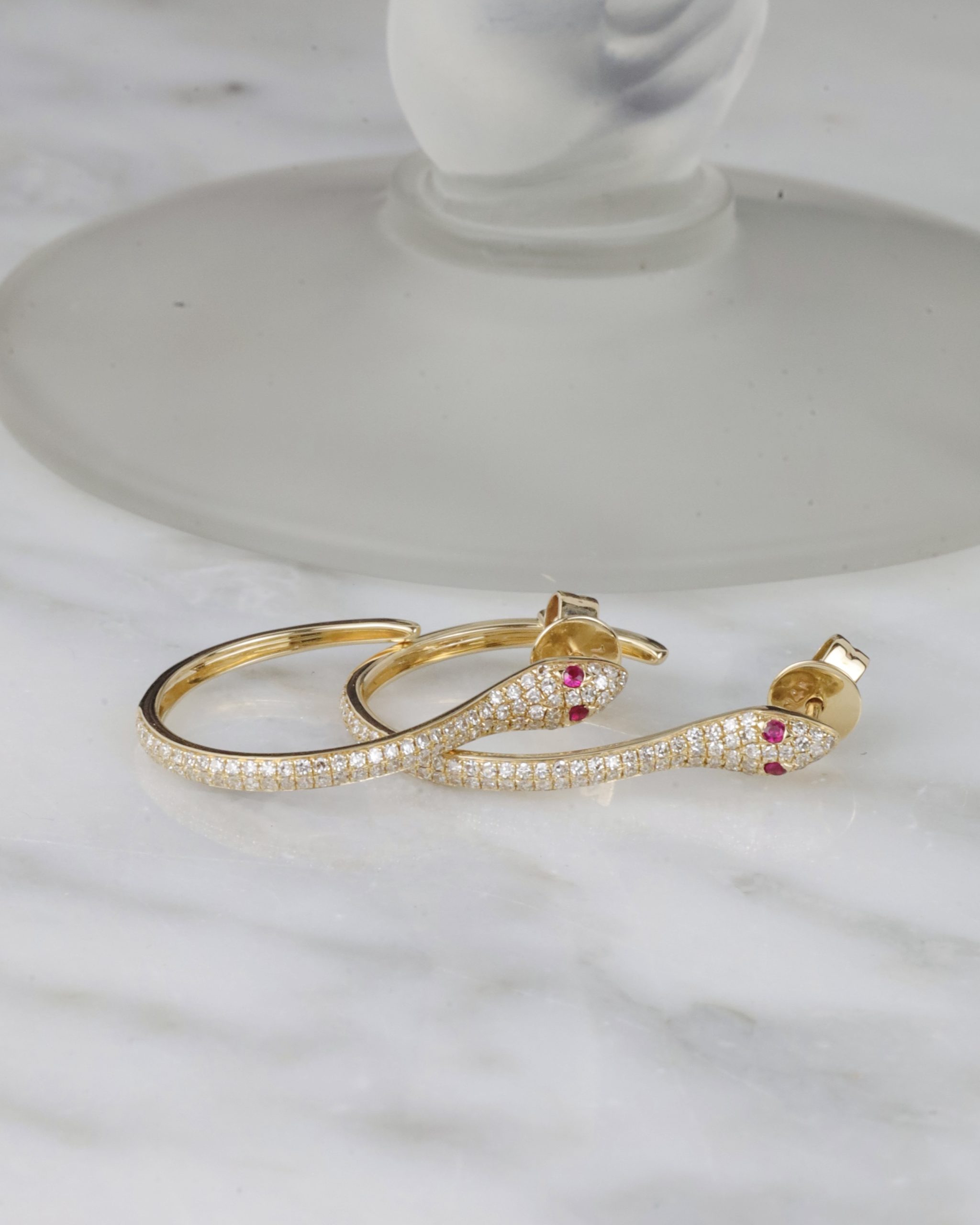 .04 CTW Ruby w/ .36 CTW Diamond Loop Earrings 14K Yellow Gold E0139-YG
