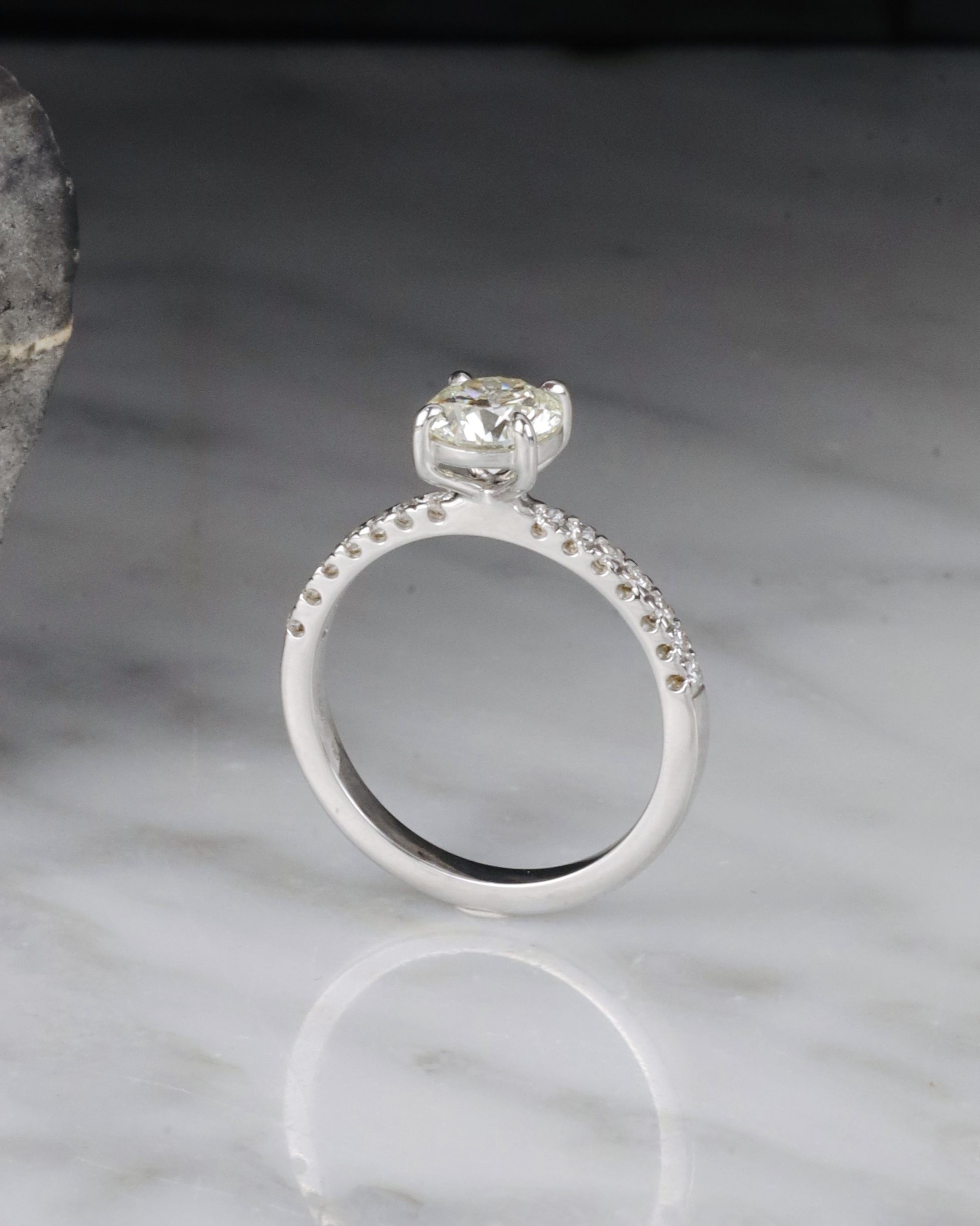 Side Stones: 14 pcs (approx.) .01 Carat Round Cut Diamonds (VSI-SI Clarity; GH to HI Color)