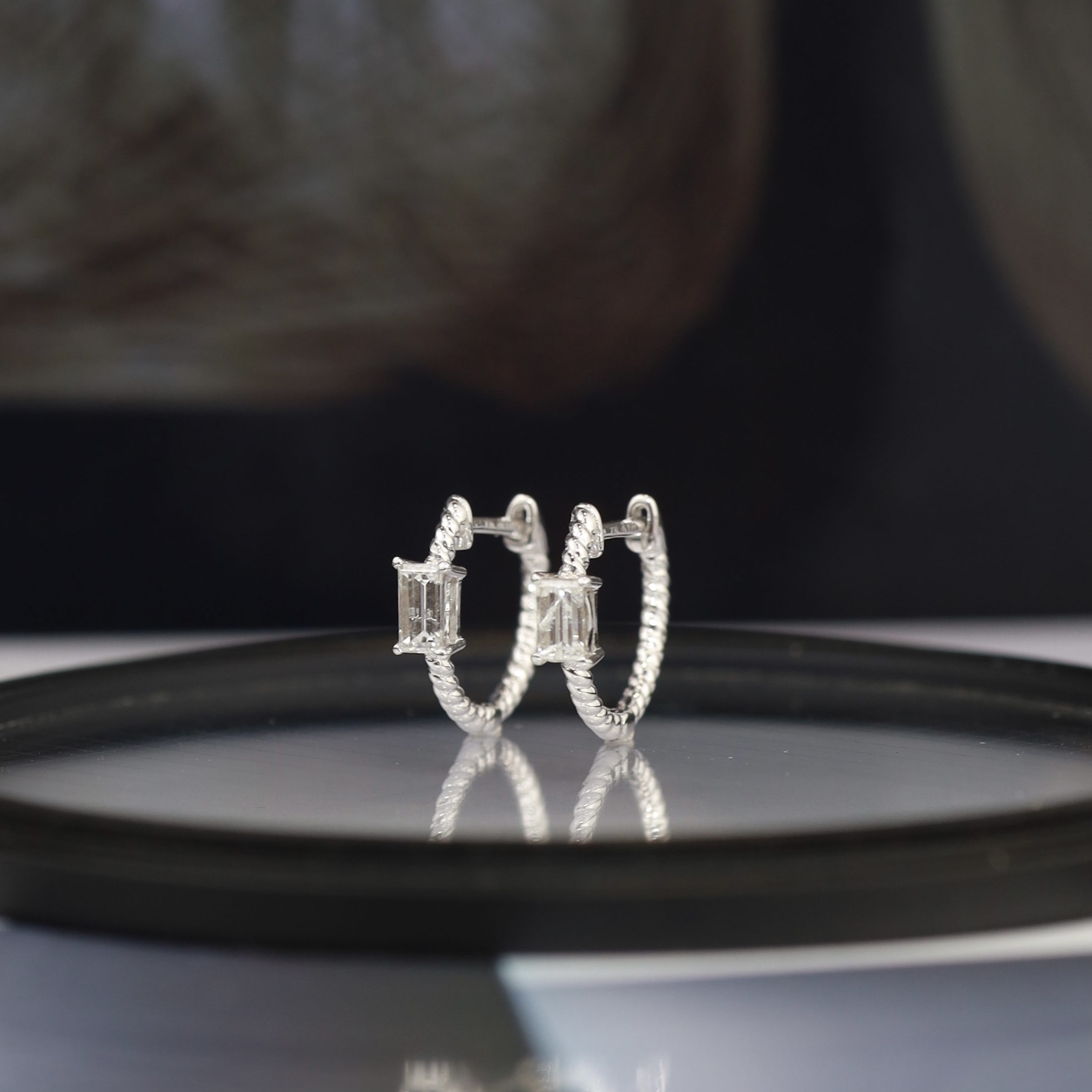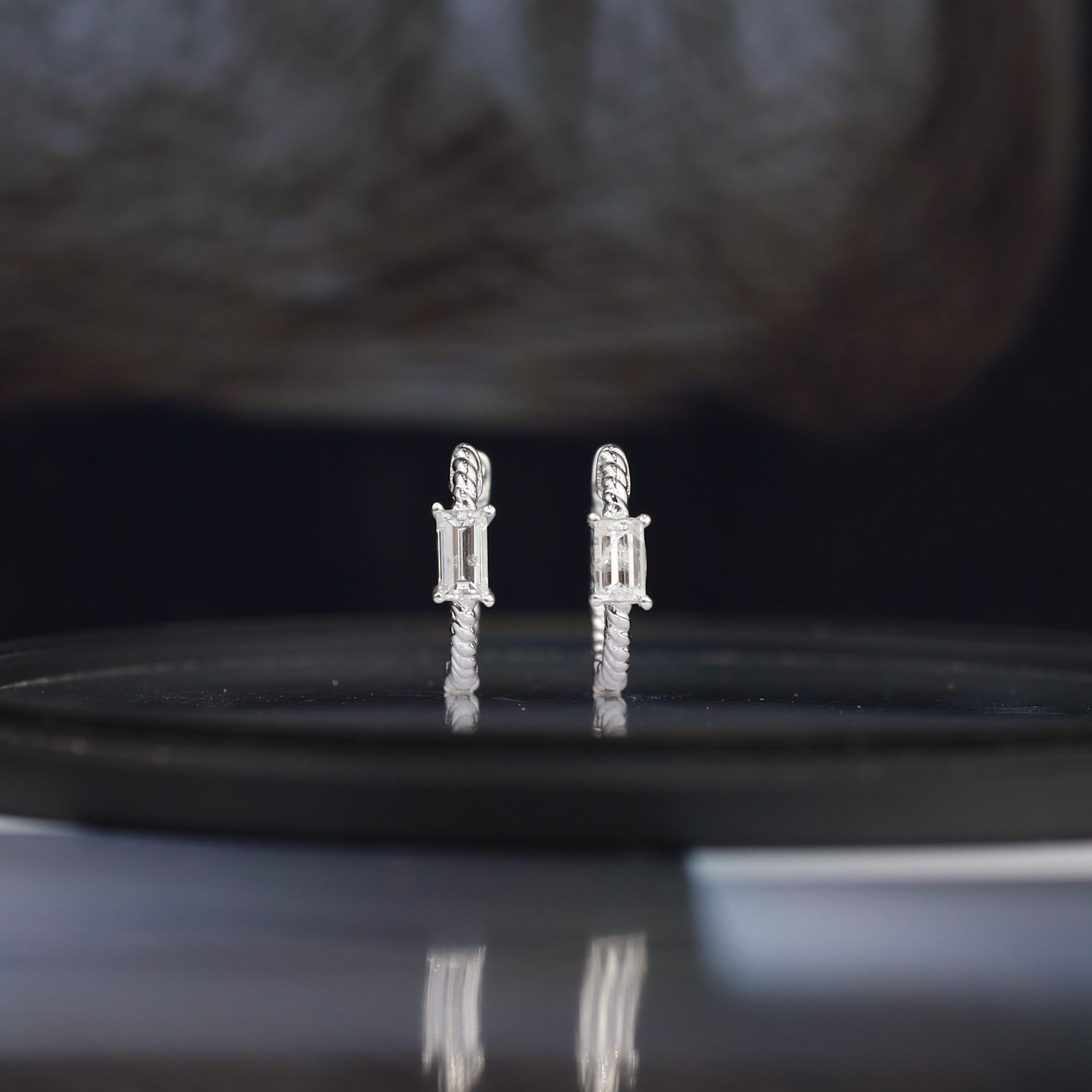 2 pcs. (approx.) .15 Carat Emerald Cut Diamonds (SI Clarity; HI Color) 18 Karat White Gold Imported Setting (approx) 1.45 grams