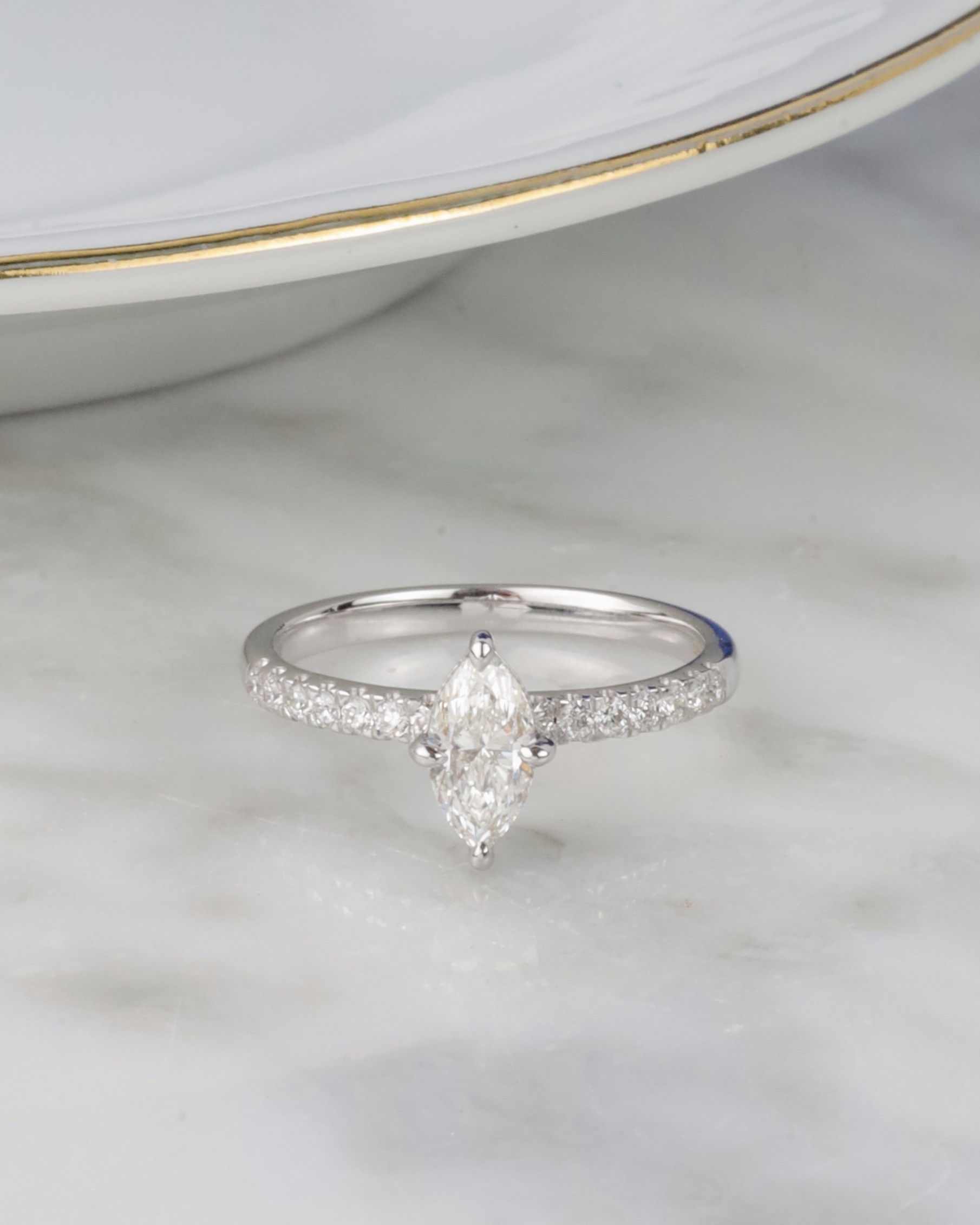 Original price was: ₱135,400.00.₱67,700.00Current price is: ₱67,700.00..30 Carat Marquise Brilliant Diamond (SI1 Clarity; E Color) GIA #2524872713 Center Stone: P40,000 Ring Size: 6 (Can be resized 2 sizes bigger and 2 sizes smaller) Metal: 18 Karat White Gold Weight: (approx.) 2.90 grams (LOCAL SETTING) NOTE: Free one time resizing to a smaller size. Minimal charges will be applied for resizing … Continued
