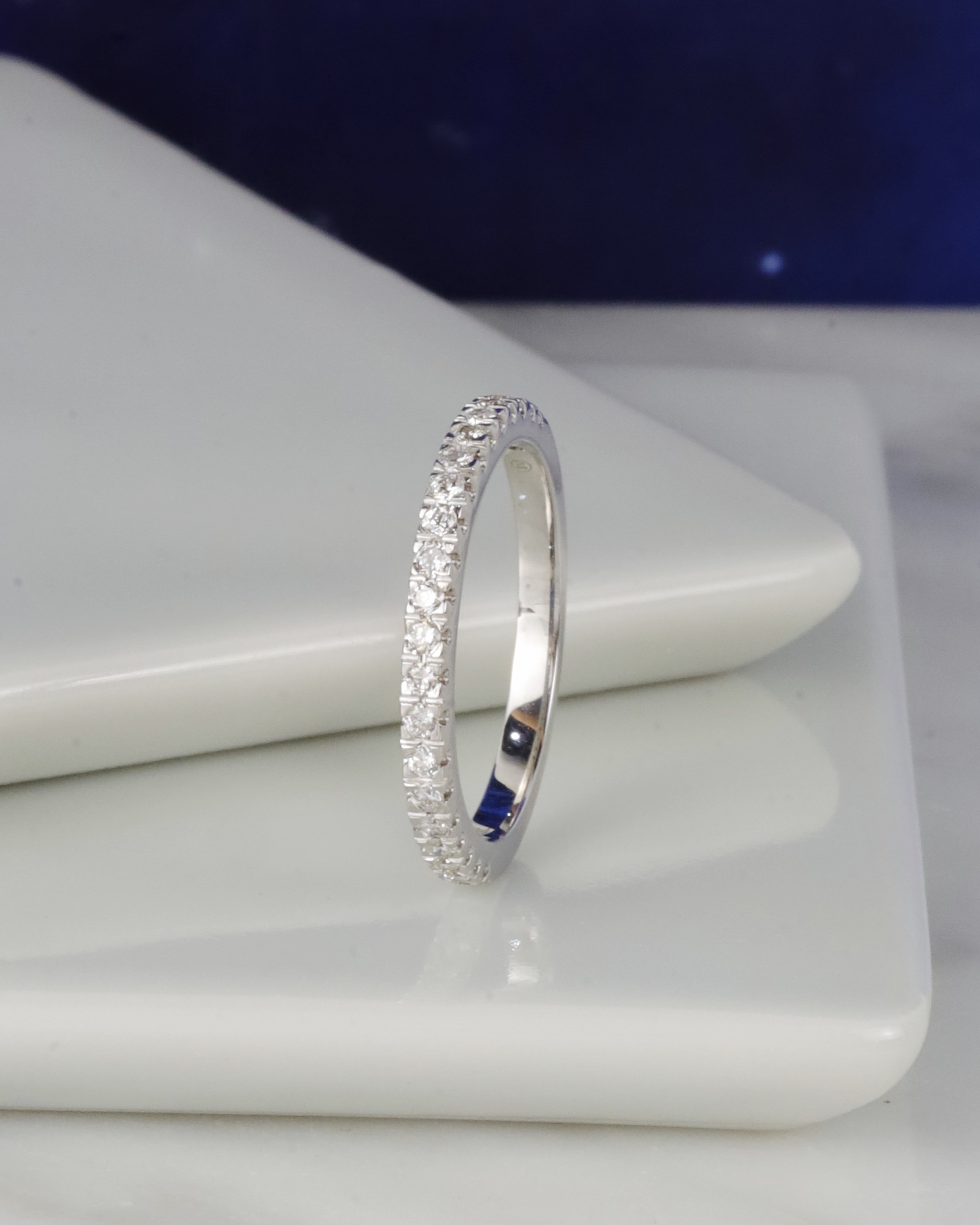 Original price was: ₱42,800.00.₱32,900.00Current price is: ₱32,900.00.23 pcs. (approx.) .01 Carat Diamonds (VSI Clarity; FG Color) 14 Karat White Gold Ring Size: 6.5 (Can be resized 1 size bigger and 1 size smaller) width-5 mm x 2 mm-thickness 3.63 grams * LS * *Resize fee starts ₱1,800 per size/ per ring