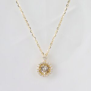 8 pcs (approx) .0113 Carat Diamonds (SI Clarity; FG Color) 26 pcs (approx) .002 Carat Diamonds (SI Clarity; GH Color) 2.25 Carat Face Illusion (8.6mm) 14 Karat White & Yellow Gold Length Of Chain: 16.2” – 17.2” (Adjustable) Pendant is not detachable Imported Setting (approx) 1.41 Grams