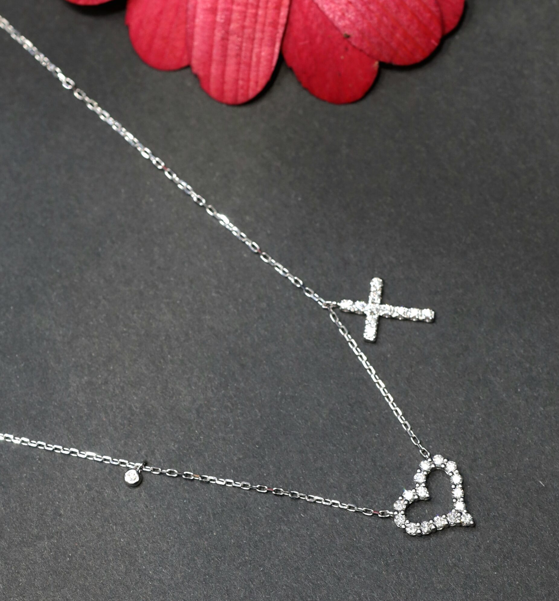 Original price was: ₱74,000.00.₱24,120.00Current price is: ₱24,120.00.1 pc (approx.) .21 Carat Diamond (VSI-SI Clarity; HI Color) 4 pcs (approx.) .035 Carat Diamonds (VSI-SI Clarity; HI Color) 18 Karat Rose Gold Length Of Chain: 15” – 16”-17” (Adjustable) Imported Setting 1.35 grams