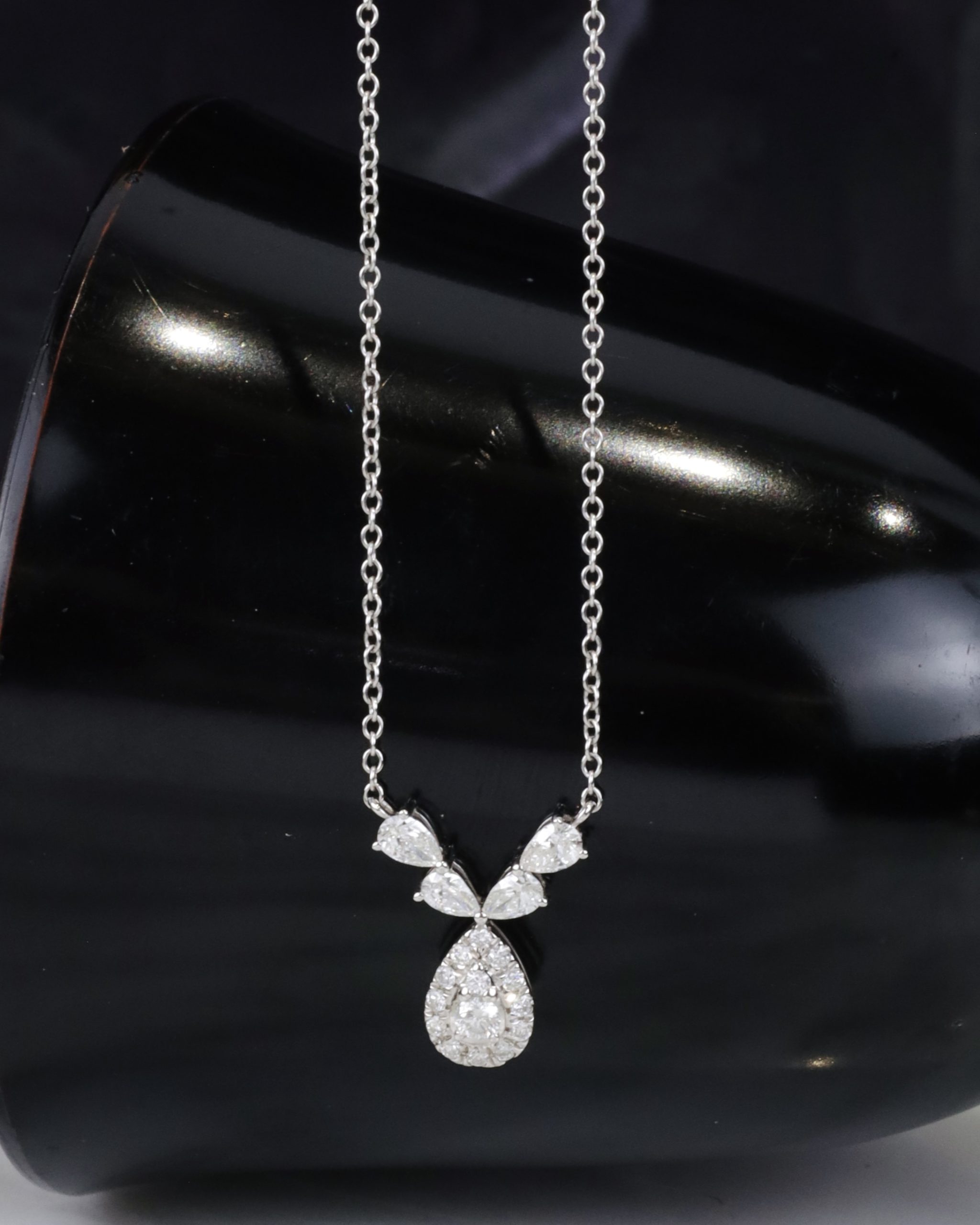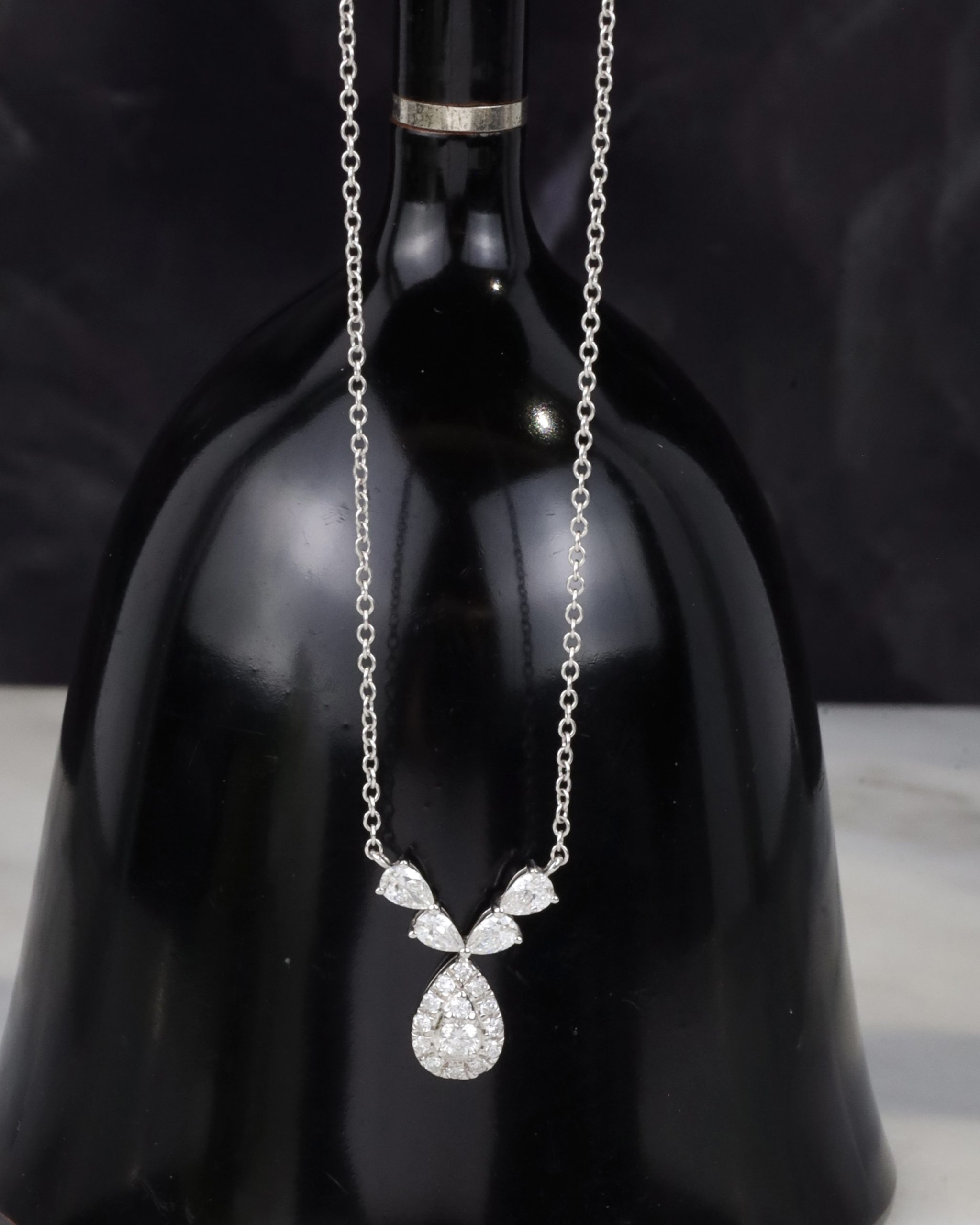 Original price was: ₱43,900.00.₱33,700.00Current price is: ₱33,700.00..35 CTW Round & Pear Shaped Diamonds (VSI-SI Clarity; GH to HI Color) Face Illusion: 1.00 Carat Imported Setting Length of Chain: 17..5” (Adjustable) Metal: 18 Karat White Gold Weight: (approx.) 2.07 grams