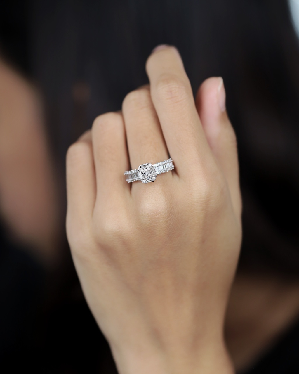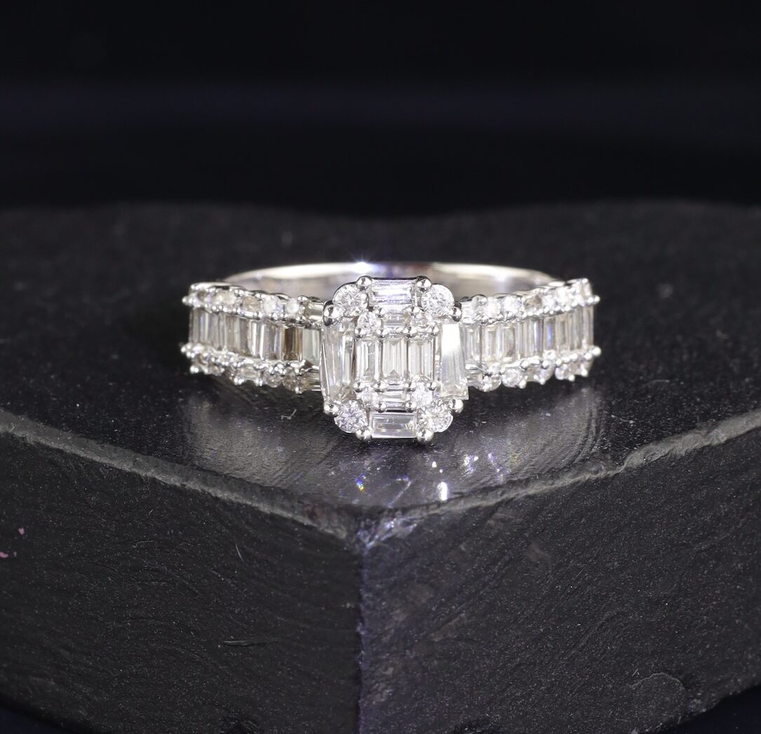 Original price was: ₱100,000.00.₱76,900.00Current price is: ₱76,900.00..690 CTW Round and Baguette Cut Diamonds (VSI-SI Clarity; GH Color) Imported Setting Ring Size: 7 (Cannot be resized) Metal: 18 Karat White Gold Weight: (approx.) 3.51 grams