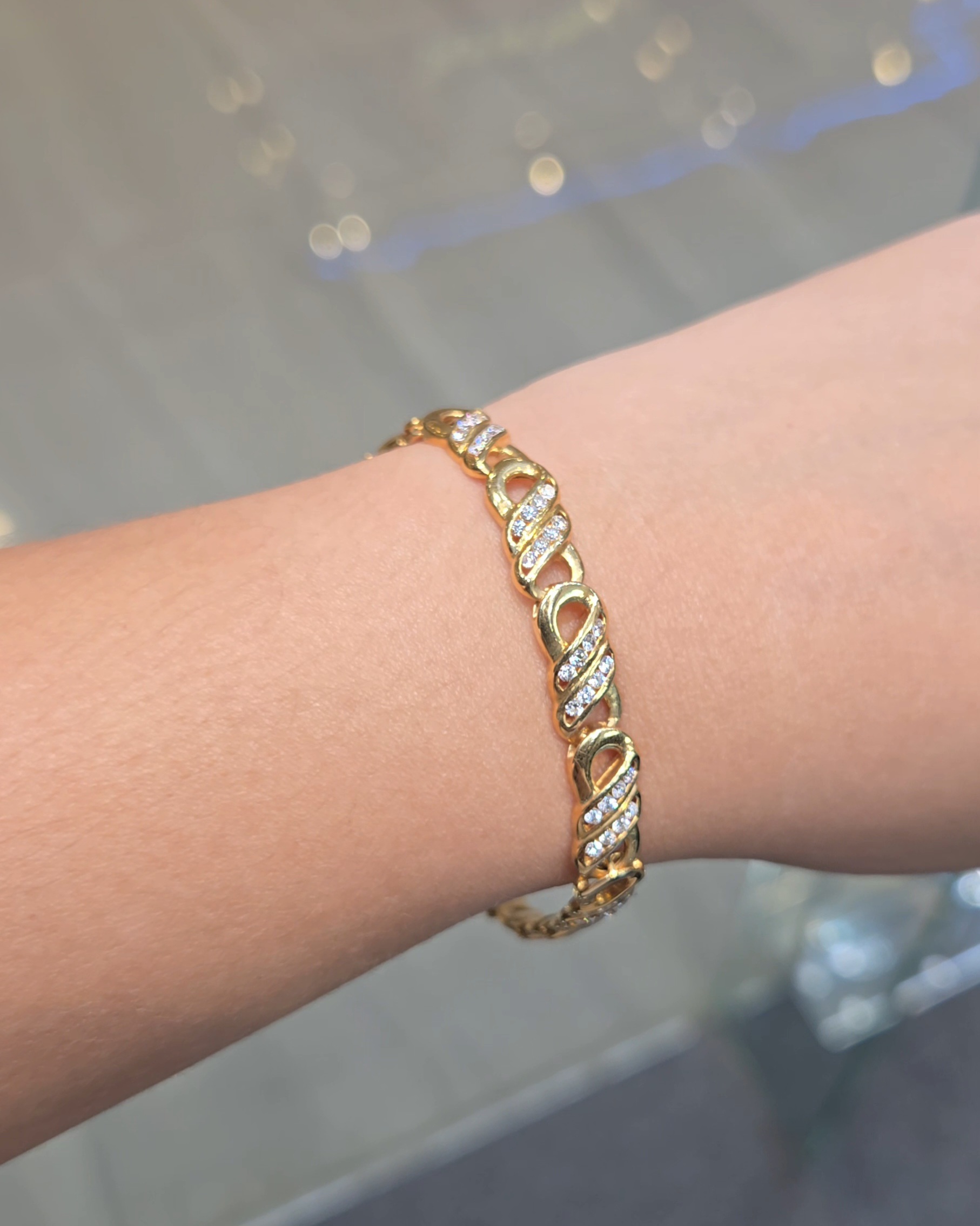 40 pcs (approx) .019 Carat Diamonds (VSI-SI Clarity; GH to HI Color)  Metal: 18 Karat Yellow Gold Wrist Size: 7” (Not Adjustable) Weight : (approx) 15.96 grams Note: Gold prices change daily. Please contact us for the latest price. 📧 Email: sales@sepvergara.com | ☎️ Viber: +(63) 918 947 6685