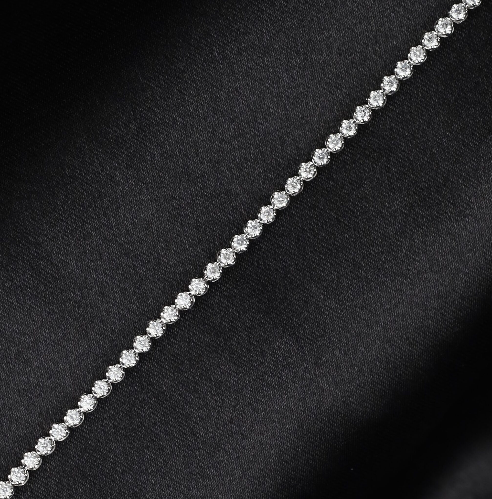 Original price was: ₱70,100.00.₱53,900.00Current price is: ₱53,900.00.77pcs 1.00 CTW Round Cut Diamonds (VSI-SI Clarity; GH to HI Color) Wrist Size: 6.8” (Not Adjustable) Metal: 18 Karat White Gold Weight: (approx.) 2.38 grams Imported Setting