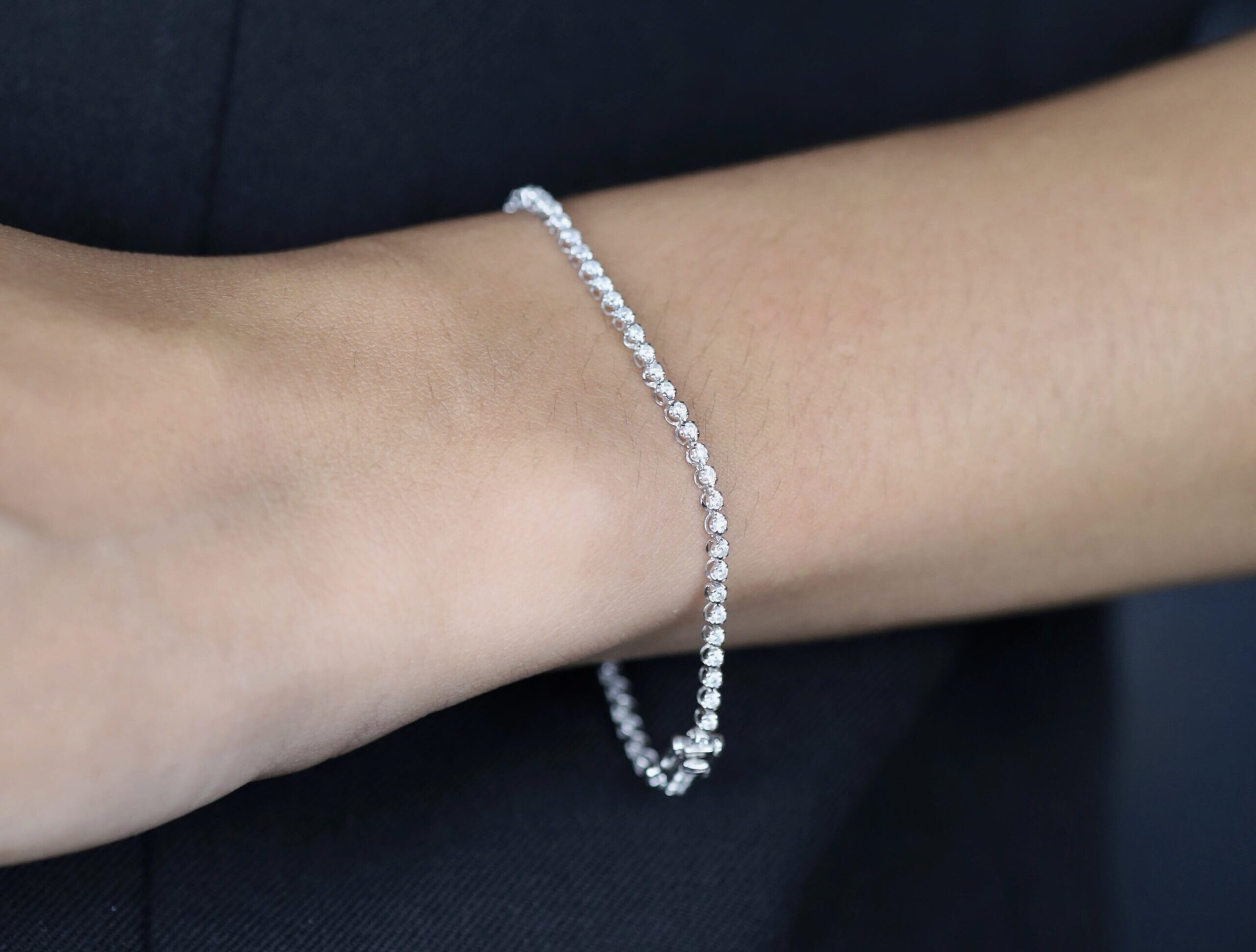 Original price was: ₱70,100.00.₱53,900.00Current price is: ₱53,900.00.67pcs 1.00 CTW Round Cut Diamonds (VSI-SI Clarity; GH to HI Color) Wrist Size: 5.9” (Not Adjustable) Metal: 18 Karat White Gold Weight: (approx.) 2.12 grams Imported Setting