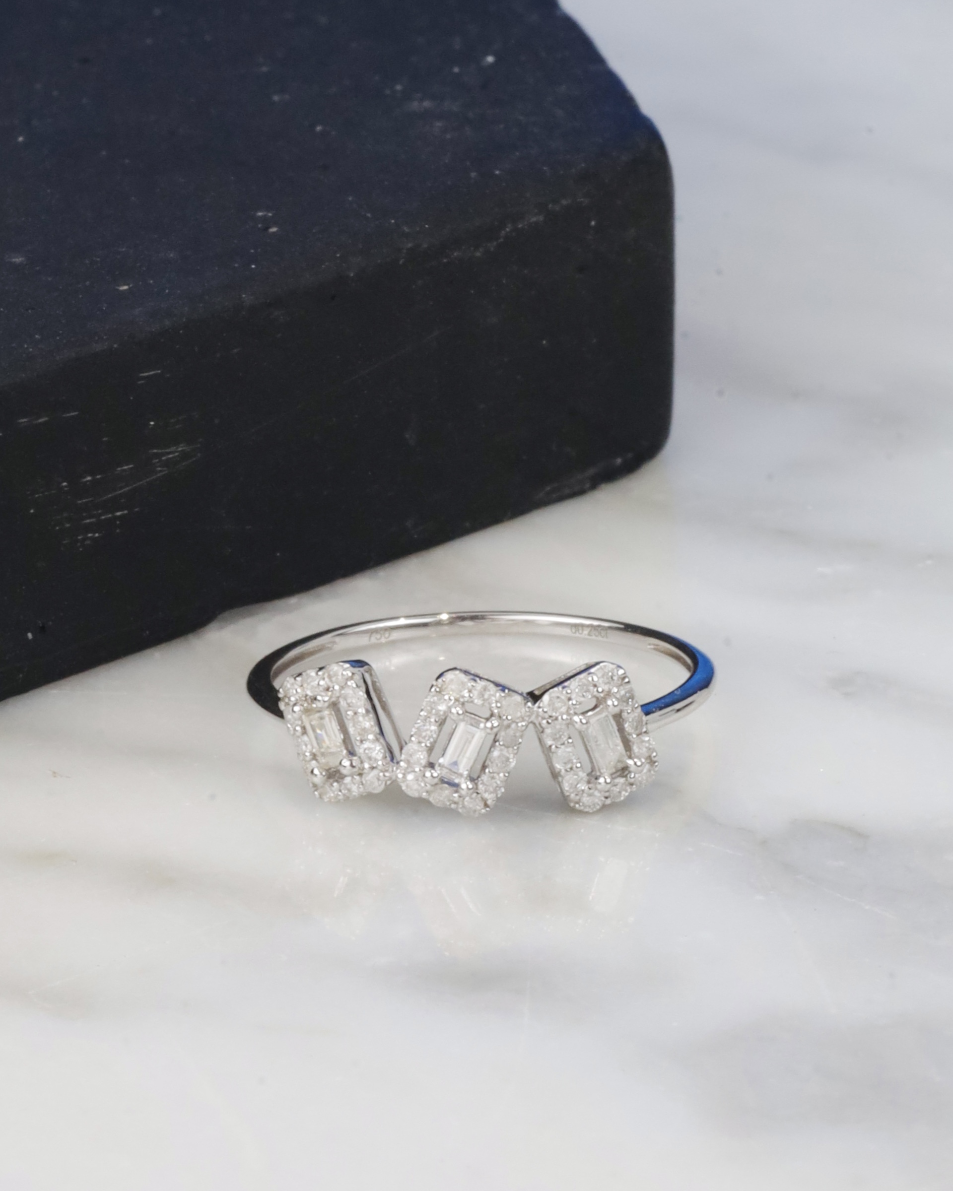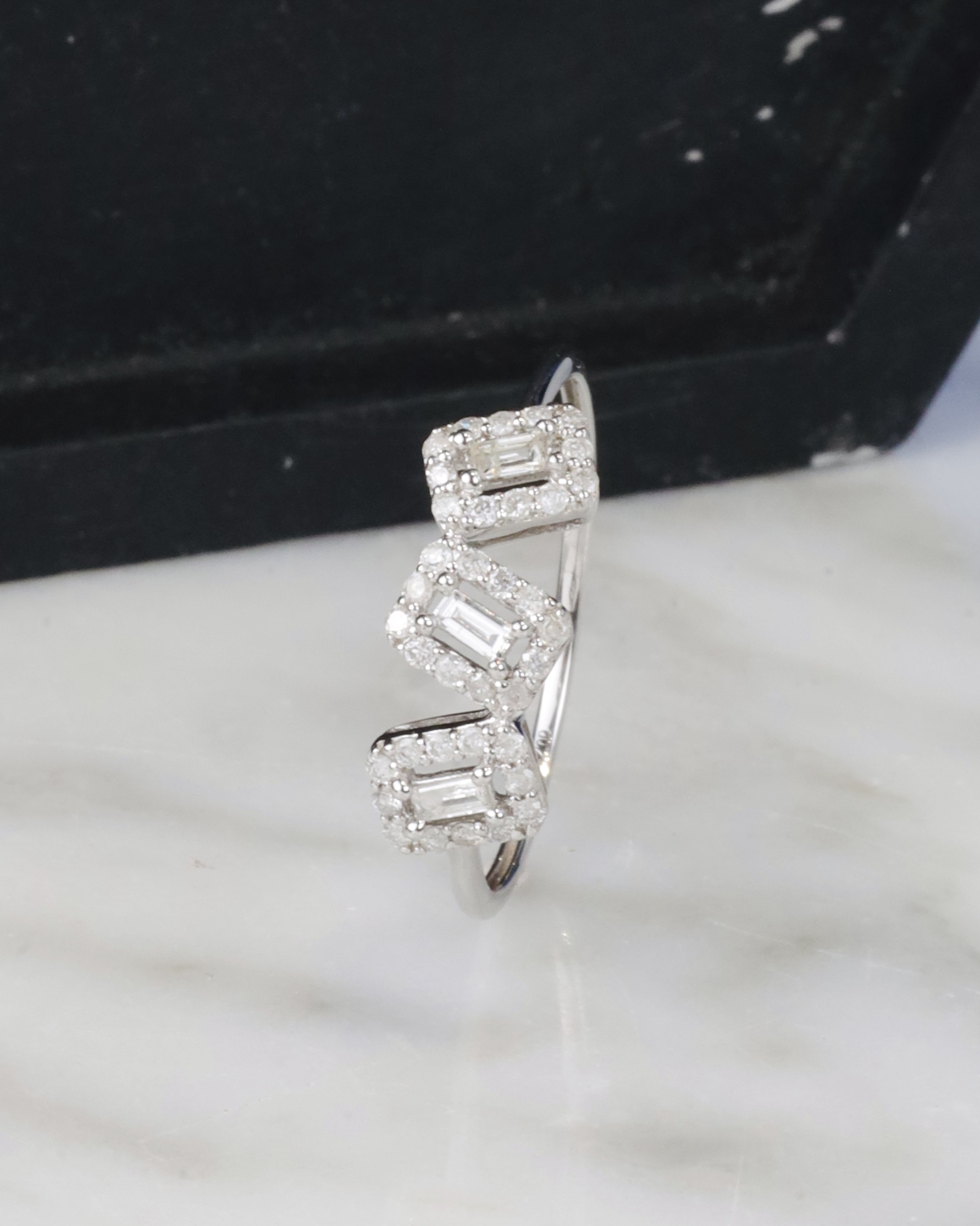 Original price was: ₱24,600.00.₱18,900.00Current price is: ₱18,900.00..25 CTW Round & Baguette Cut Diamonds (SI-I Clarity; FG to GH Color) Face Illusion: .50 Carat Imported Setting Ring Size: 7 (Cannot be resized) Metal: 18 Karat White Gold Weight: (approx.) 1.10 grams