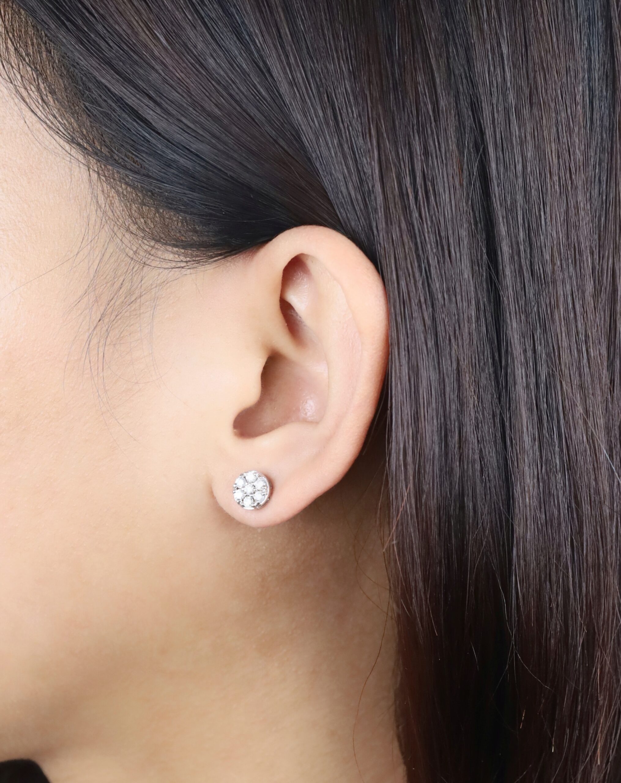 2 pcs. (approx.)  .16 Carat Diamonds ( SI Clarity; GH Color ) 12 pcs. (approx.) .057 Carat Diamonds ( SI Clarity; GH Color ) 2.00 Carat Face Illusion ( 8 mm ) 18 Karat White Gold Imported Setting (approx.) 1.54 grams