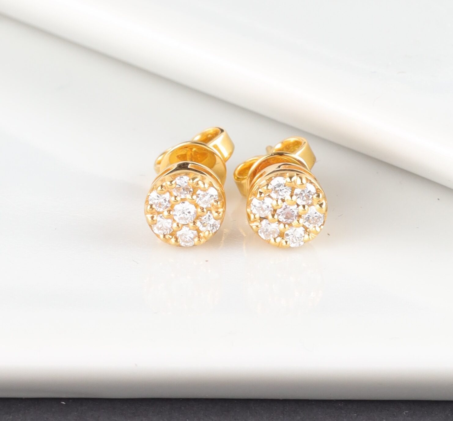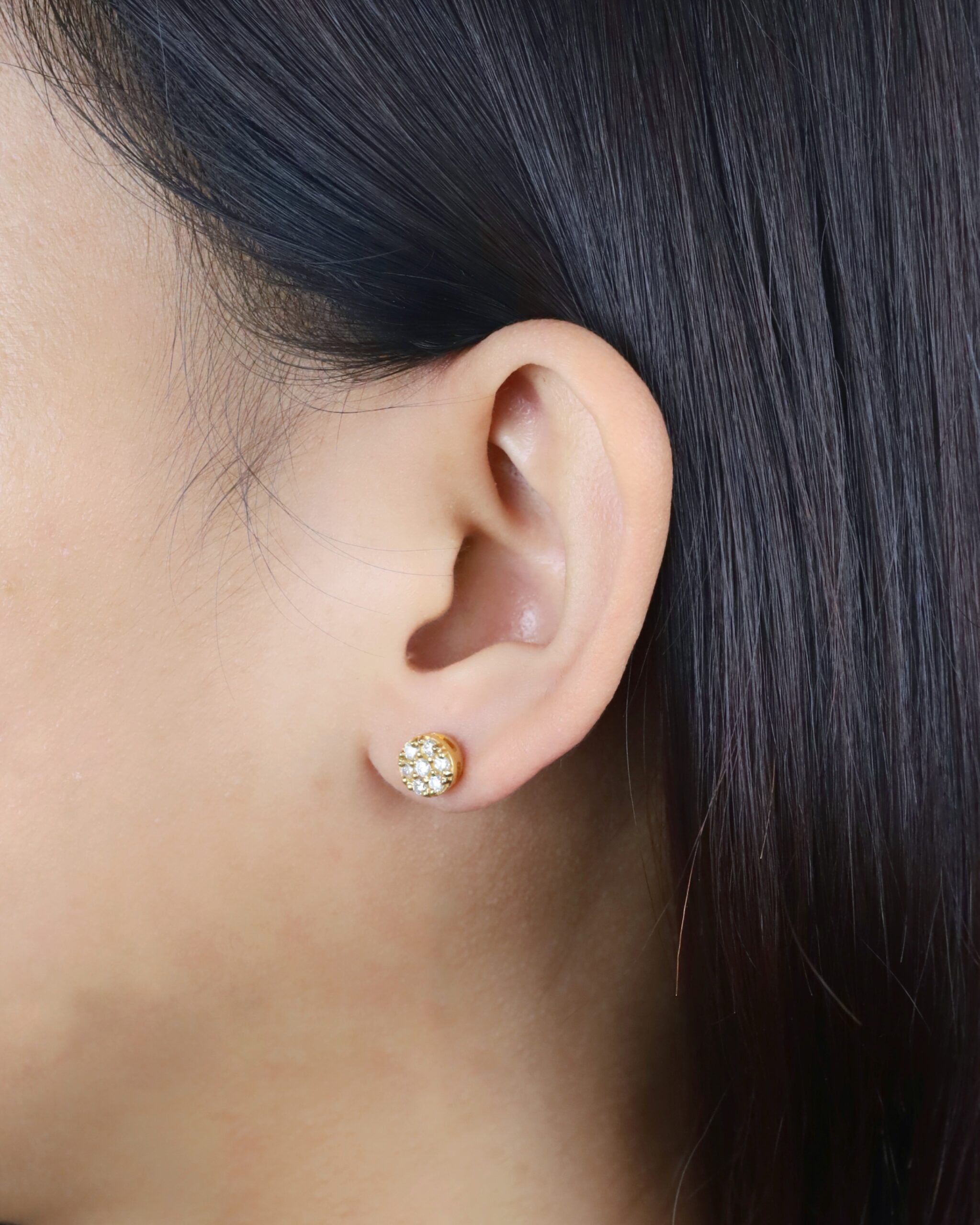 14 pcs.( approx.) .035 Carat Diamonds ( VSI-SI Clarity; FG to GH Color ) Face Illusion: 1.00 Carat ( 6.5 mm ) Metal: 14 Karat Yellow Gold Weight: ( approx.) 2.62 grams *LS*