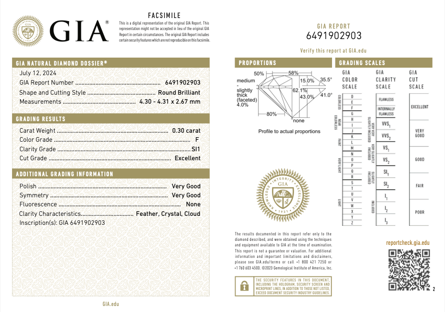 1 pc .30 Carat Round Brilliant Diamond (SI2 Clarity; I Color) GIA #6512003629 Center Stone: P34,000   Ring Size: 5 (Can be resized 2 sizes bigger and 2 sizes smaller) Metal: 18 Karat  Yellow Gold Weight: (approx.) 1.95 grams LOCAL SETTING