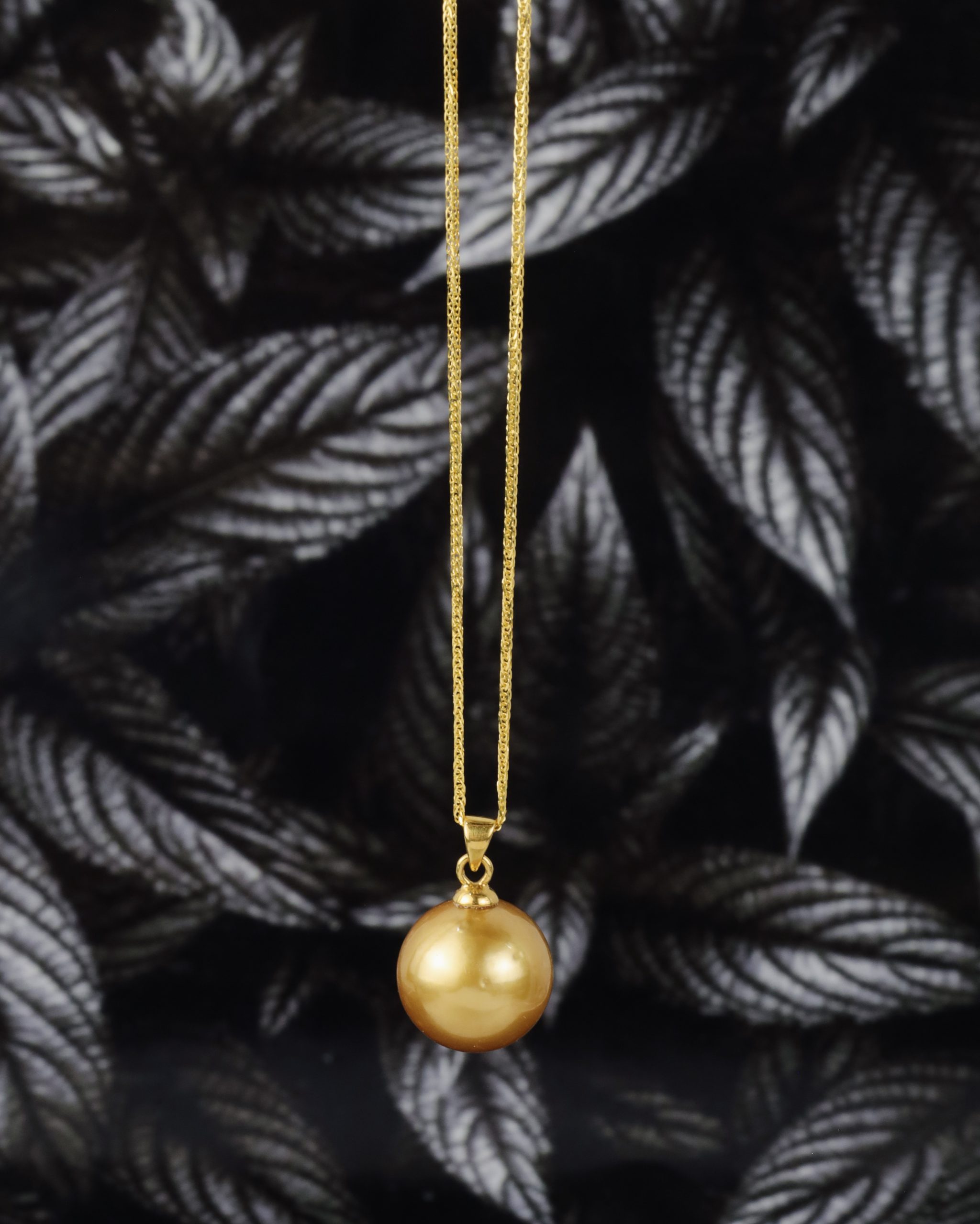 Original price was: ₱12,300.00.₱9,400.00Current price is: ₱9,400.00.1 pc 12.3mm Golden South Sea Pearl Round Shape Very Thick Nacre Very High Luster Chain not Included Chain Used: C54-4 YG Metal: 18 Karat Yellow Gold Weight: (approx.) 3.04 grams (LOCAL SETTING)