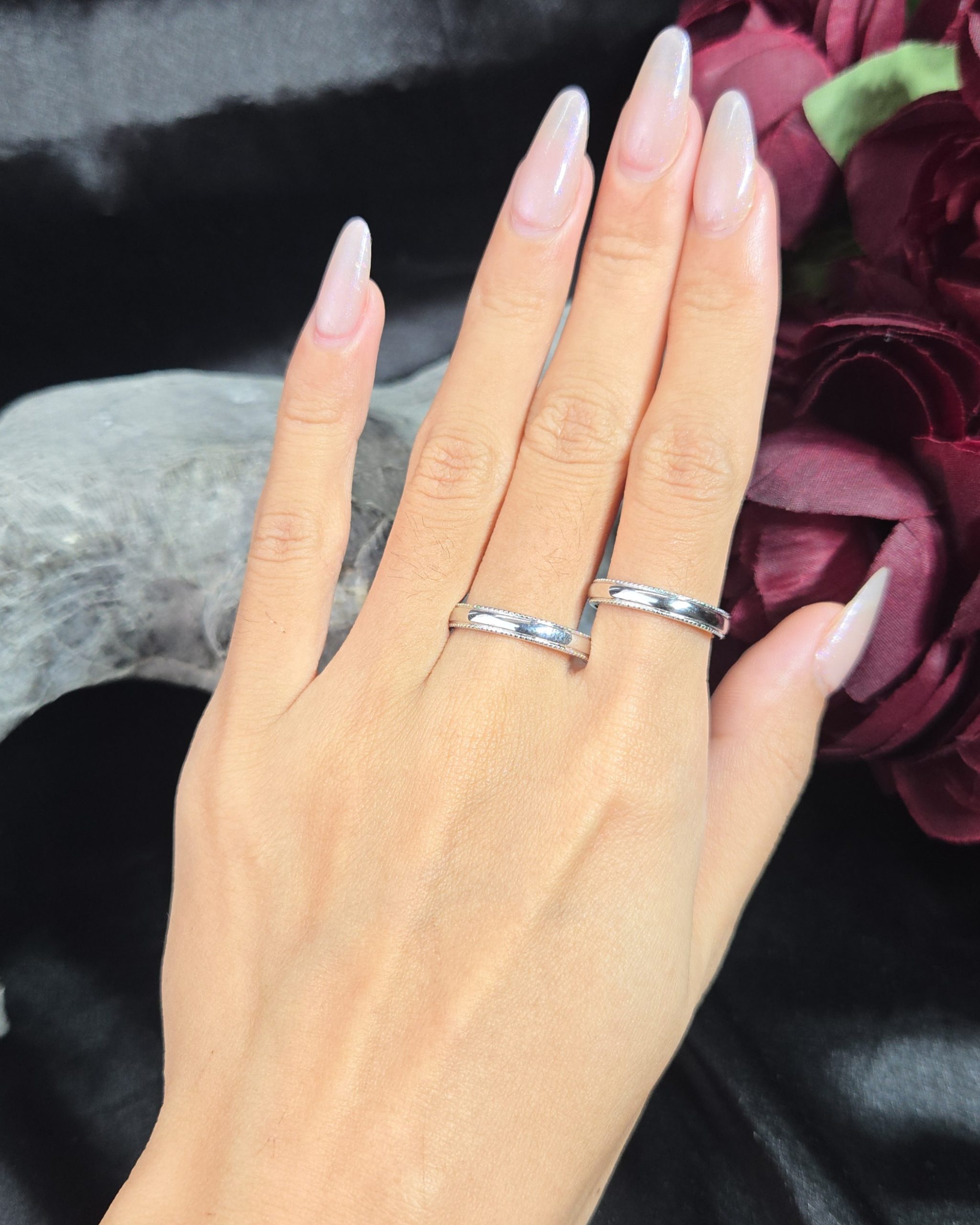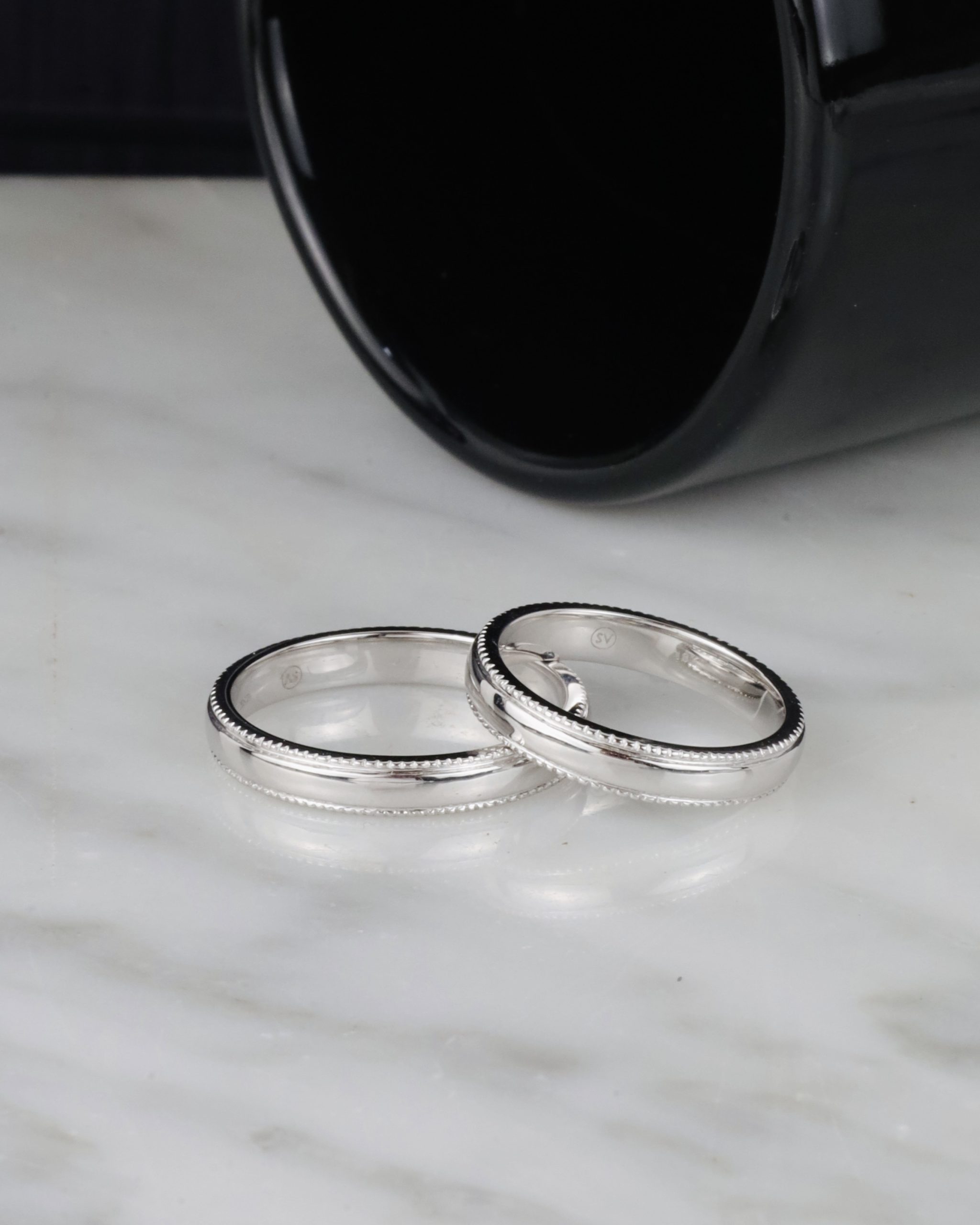 Bride’s Ring Width: 3.0mm Thickness: 1.7mm Ring Size: 7 (Can be resized 2 sizes bigger and 2 sizes smaller) Metal: 18 Karat White Gold Weight: (approx.) 4.65 grams Polished Groom’s Ring Width: 3.0mm Thickness: 1.8mm Ring Size: 10 (Can be resized 2 sizes bigger and 2 sizes smaller) Metal: 18 Karat White Gold Weight: … Continued
